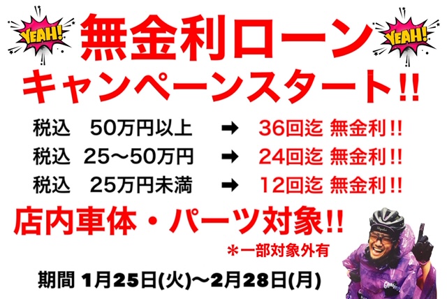 無金利ローンキャンペーン!!スタートです!!