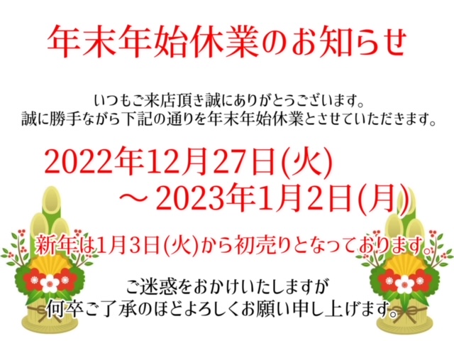 年末年始休業となります。