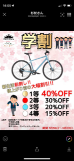 ご好評につき期間延長決定!!3月31日迄!!学生さん必見!!新生活準備前倒し!!今がチャンスの学割ガラポンセールスタート!!